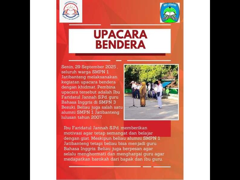 Pada tanggal 10 November 2025 di SMPN 1 Jatibanteng mengadakan upacara untuk memperingati hari pa... Read more